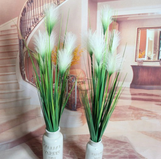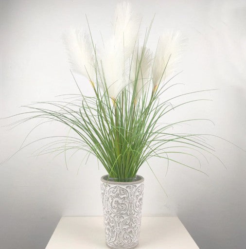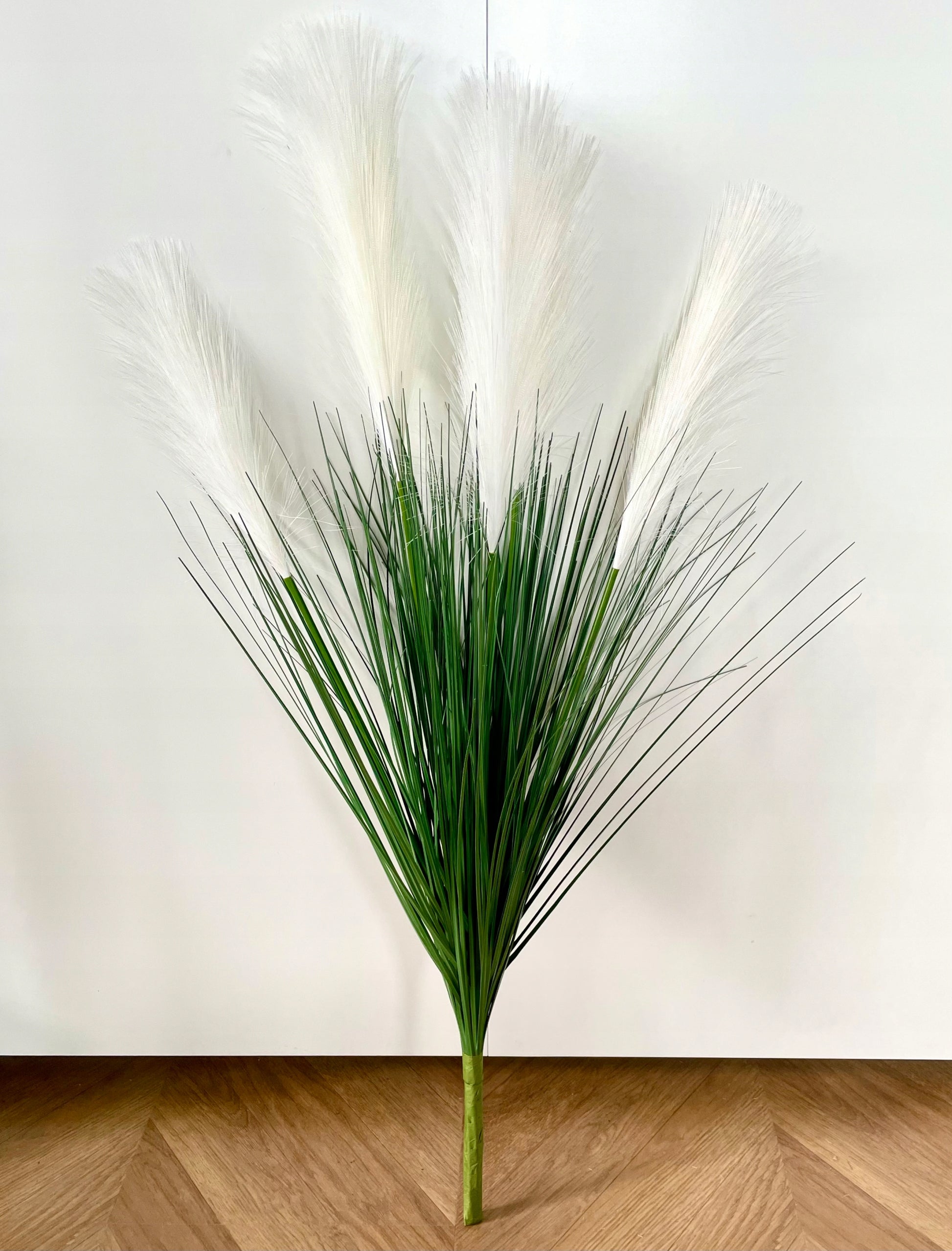 Pampų žolės puokštė su 5 žiedynais – tikras interjero dizaino šedevras, kuris suteiks prabangos ir elegancijos bet kuriai erdvei. Kiekvienos šakos ilgis siekia net 90 cm, o lankstus stiebas leidžia lengvai formuoti puokštę pagal savo norus ir poreikius. Sodrios žalios ir baltos spalvos derinys suteikia natūralumo ir gaivumo pojūtį, puikiai tinka tiek kompozicijoms, tiek vazoms dekoruoti. Kiekviena šaka atrodo itin natūraliai, o vos trijų šakų puokštė pridės subtilumo bet kokiam dekorui. Šis augalas yra idealus sprendimas papuošti namų interjerą, restoranus, viešbučius, biurus, mokyklas ar parduotuves. Pampų žolė taip pat puikiai tiks teminiams renginiams, balkono, terasos ar sodo dekoravimui, suteikdama erdvei lengvumo ir gaivumo.