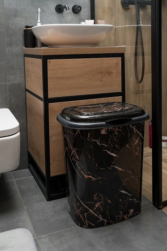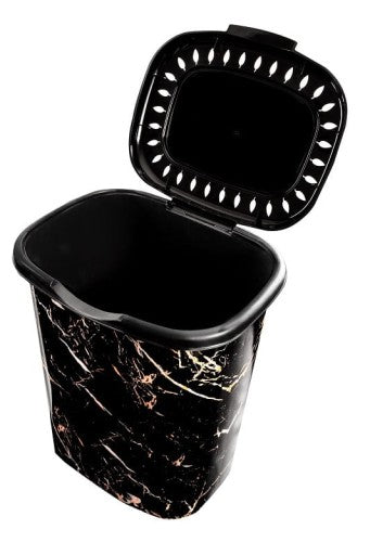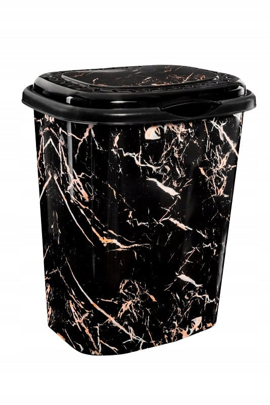 Skalbinių krepšys "Stonique", pagamintas iš ekologiško perdirbto plastiko, yra puikus pasirinkimas tiems, kurie nori derinti funkcionalumą su moderniu dizainu. Jo juodas paviršius, dekoruotas marmuro imitacija, suteikia elegancijos ir prabangos jausmą bet kuriai patalpai.